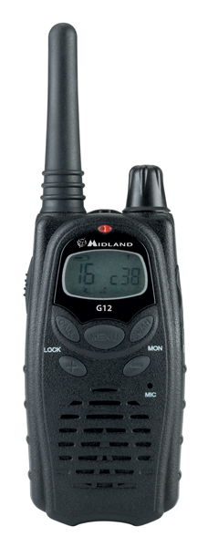 Das Midland G 12 ist ein semiprofessionelles PMR446-Funkgerät, dessen Vorzüge seine besonders kompakten Abmessungen und sein robustes Design sind. Das Ni-MH-Akkupack 1800 gewährleistet eine lange Betriebsdauer von über 28 Std. Mit der Software PRG-G12 (Zubehör) können nicht nur 8 Kanäle mit einem individuellem Kodierungston programmiert werden (CTCSS und DCS), sondern Geräte vom Händler für spezielle Anforderungen vorprogrammiert werden.